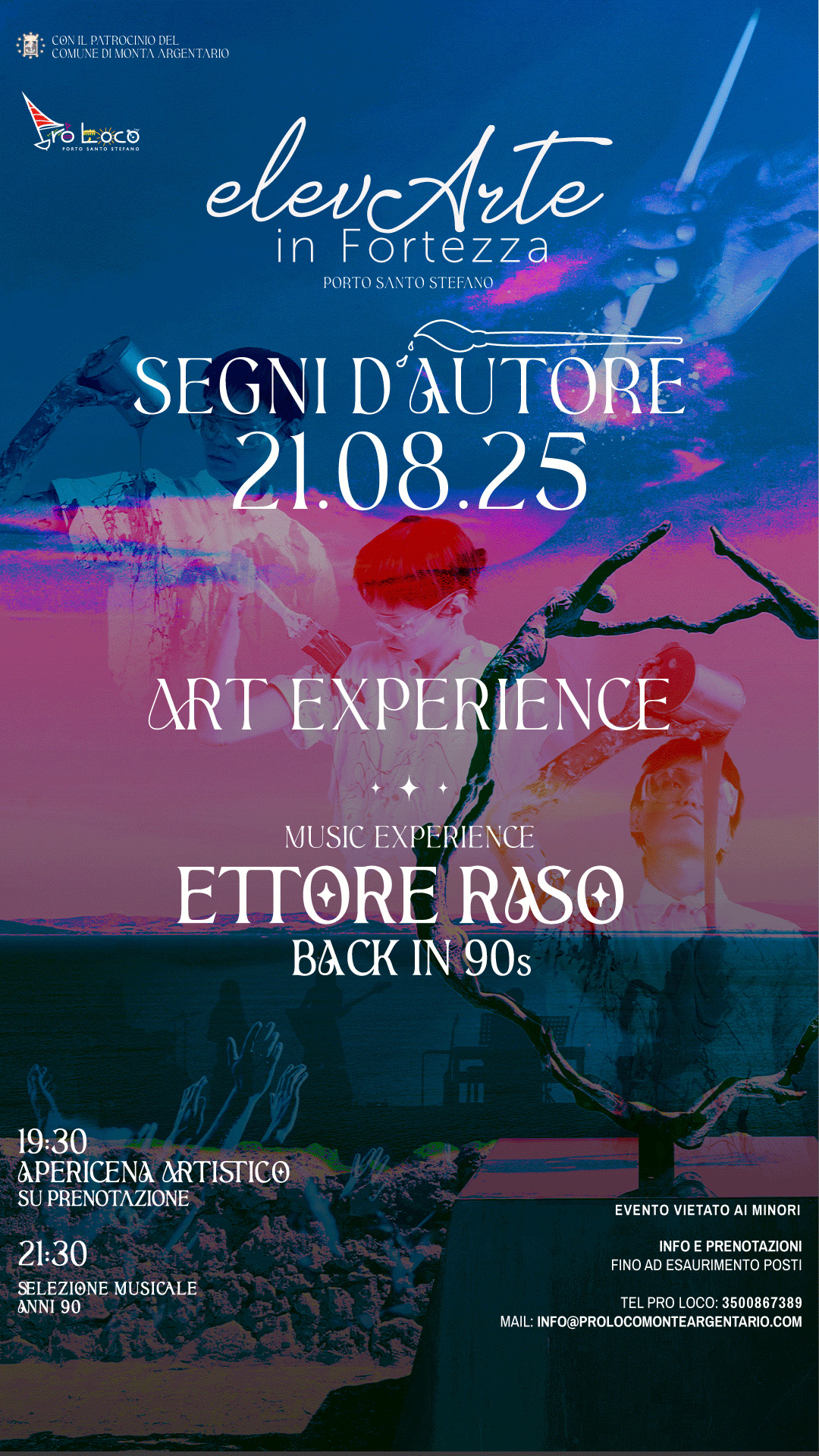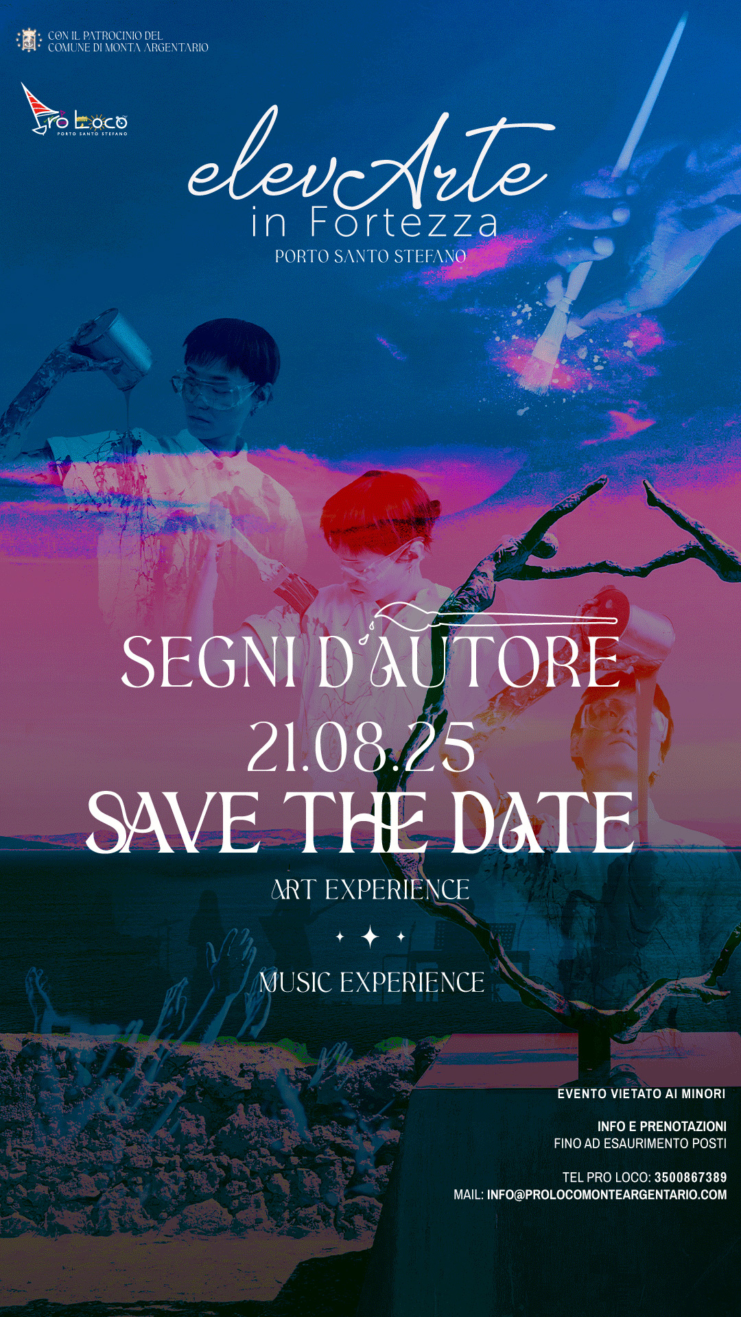 Elevarte in fortezza Artworks dedicati ad eventi artistico culturali organizzati dalla Pro Loco di Porto Santo Stefano sulla terrazza della Fortezza Spagnola Client: Pro Loco Porto Santo Stefano PROJECT Artwork Layout & Supporto: Instagram Feed, Instagram Histories